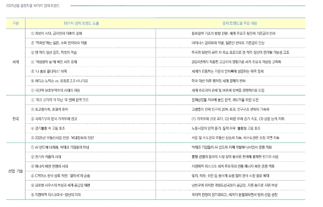 2025년은 경제 구조가 크게 변형되는 항복점의 시기로, 세계와 한국 경제에서 다음과 같은 주요 변화가 예상