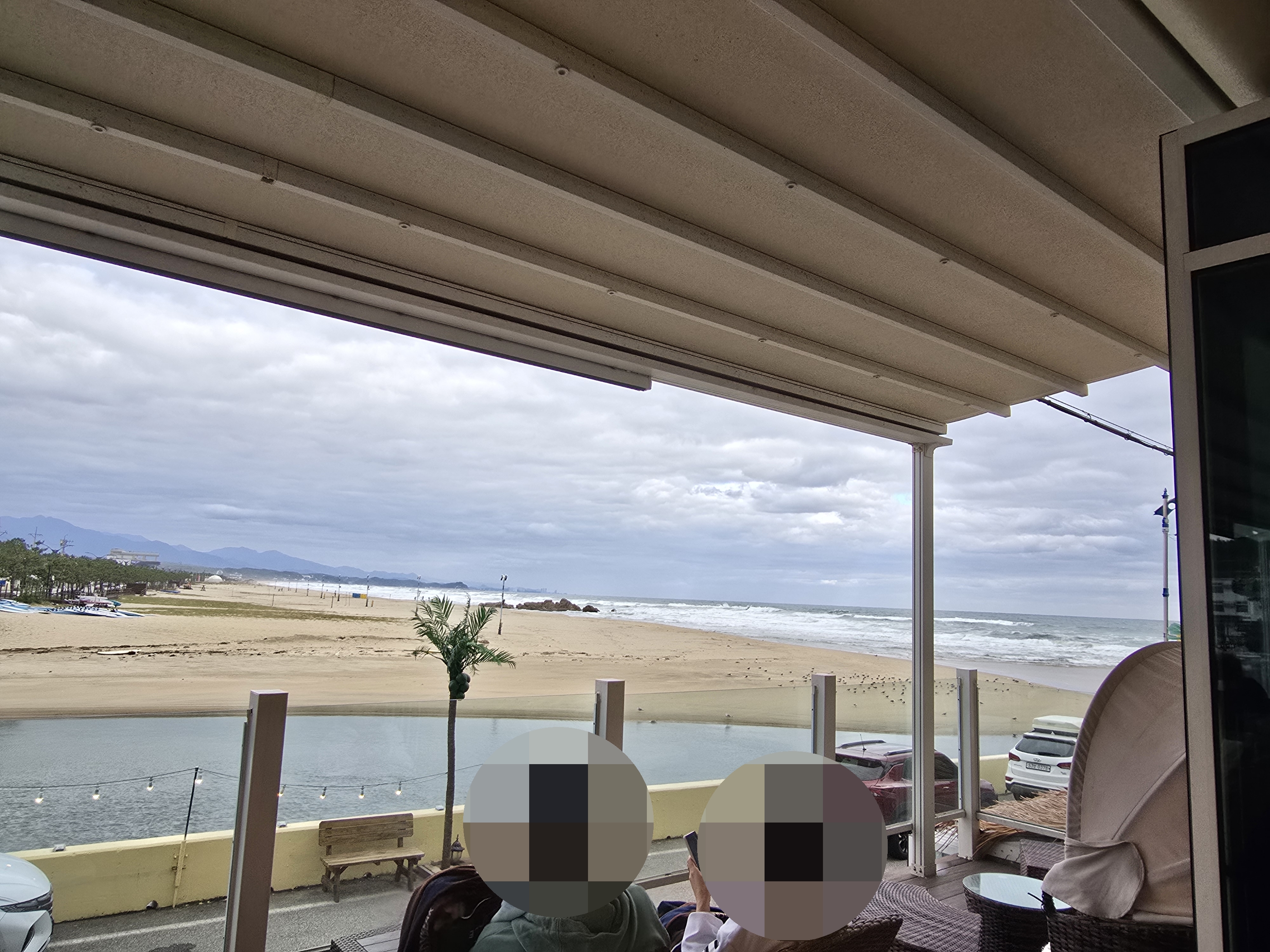 바다 볼 수 있는 야외에 앉고 싶었으나, 날씨가 추워서 실내에서 바다보며 즐겼어요.