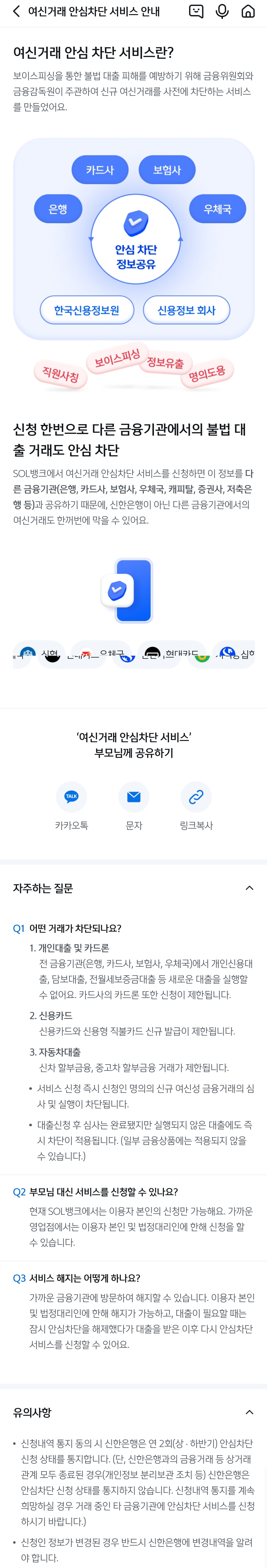 여신거래 안심서비스가 영업점에서만 된다고 해서