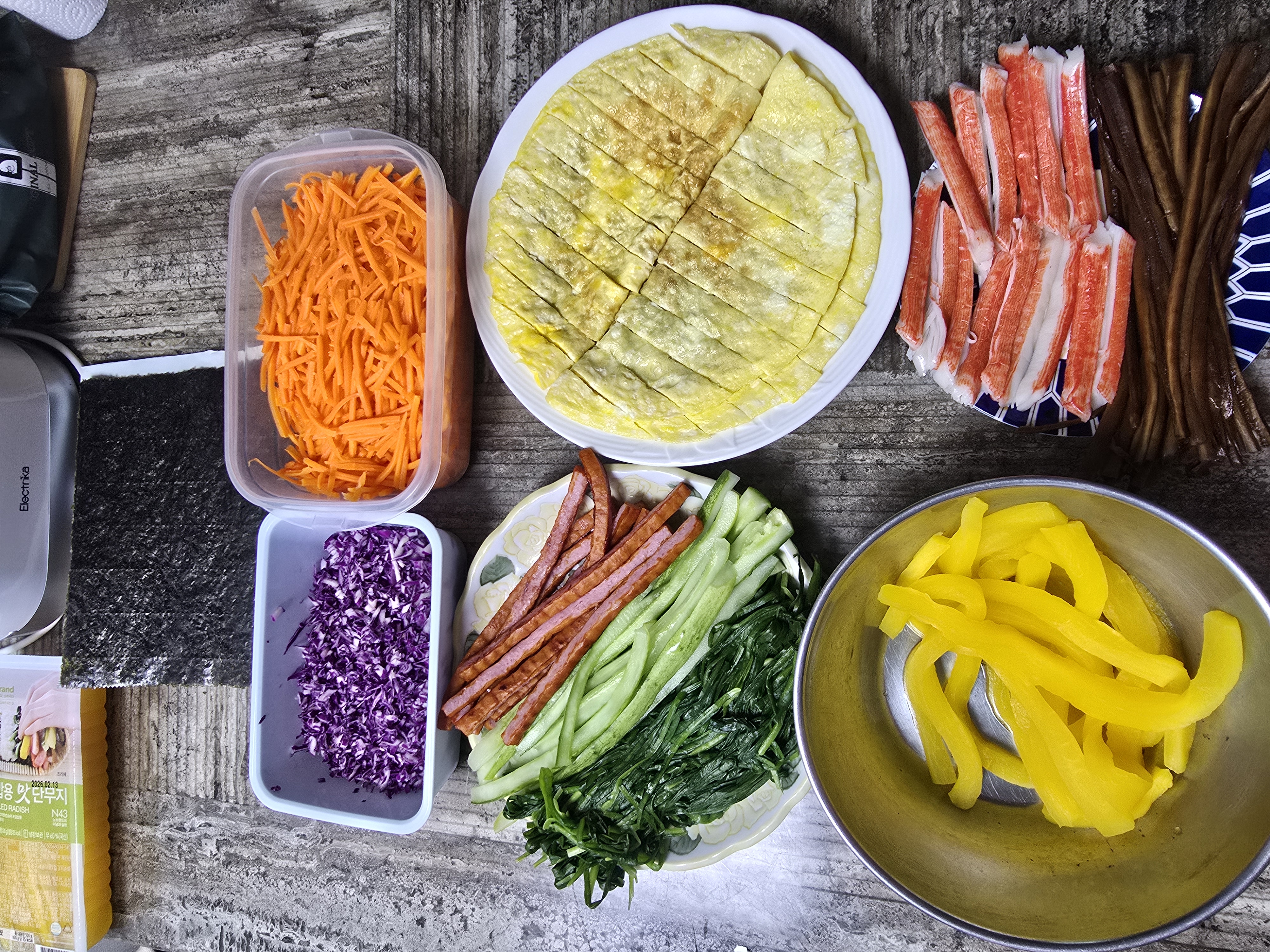 구매한 단무지와 우엉엔 간이 되어 있을 것 같아서 달걀과 오이에만 소금간을 했고요.😆