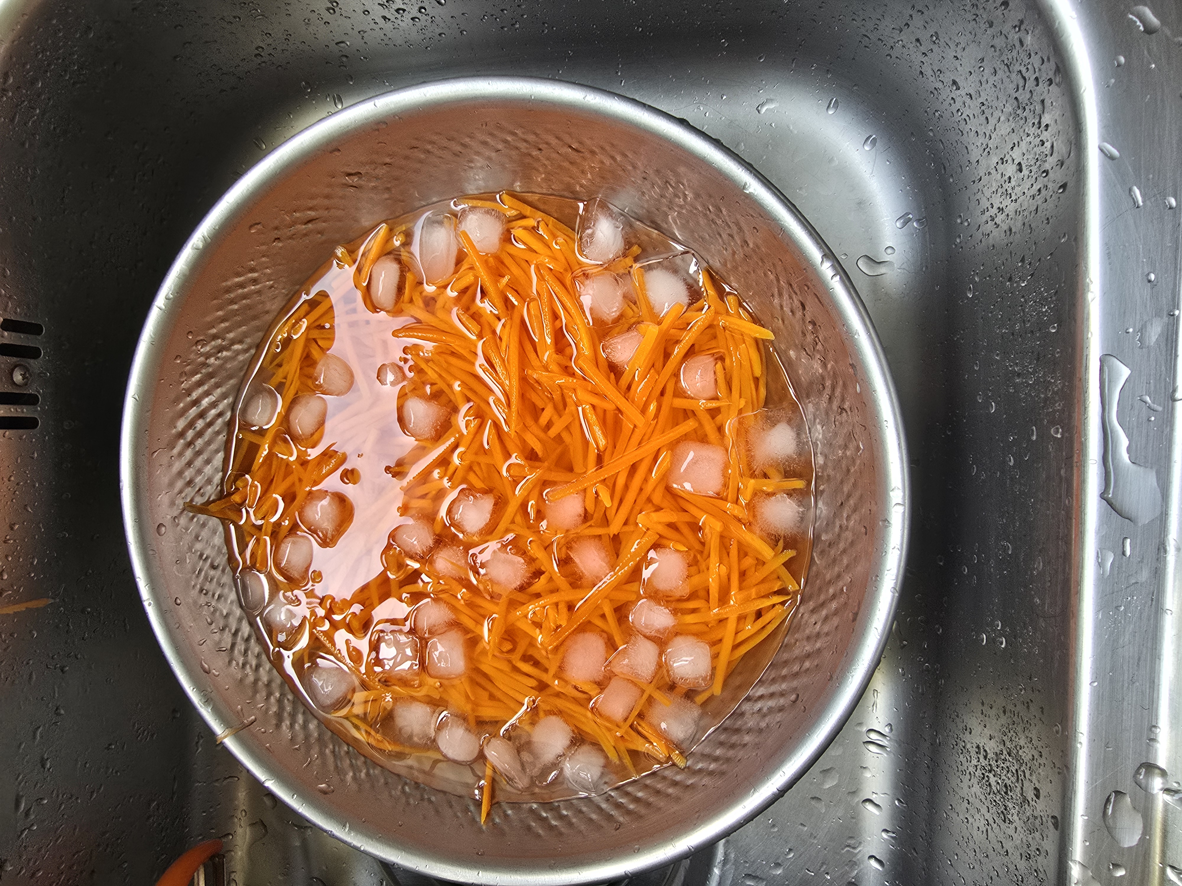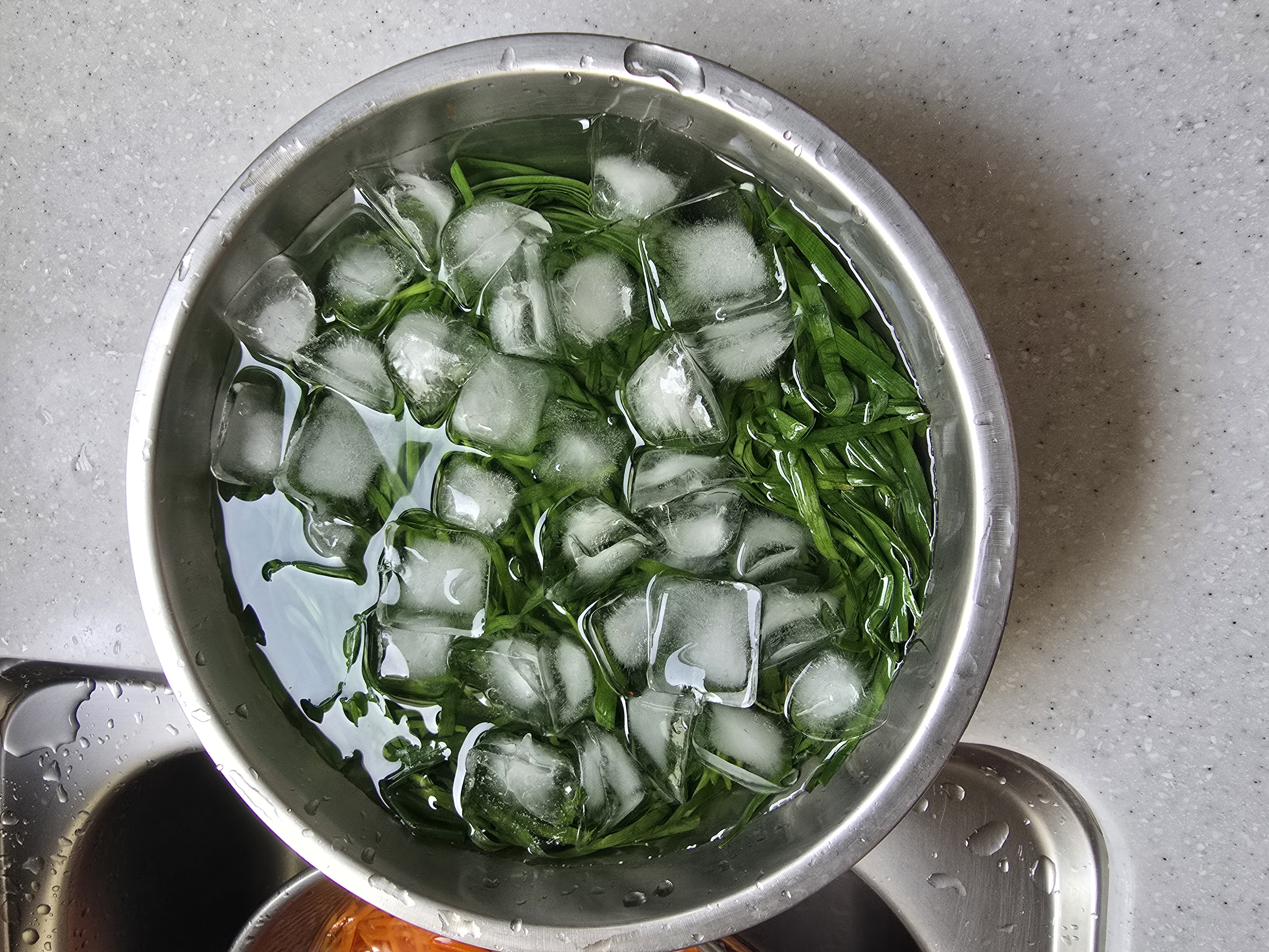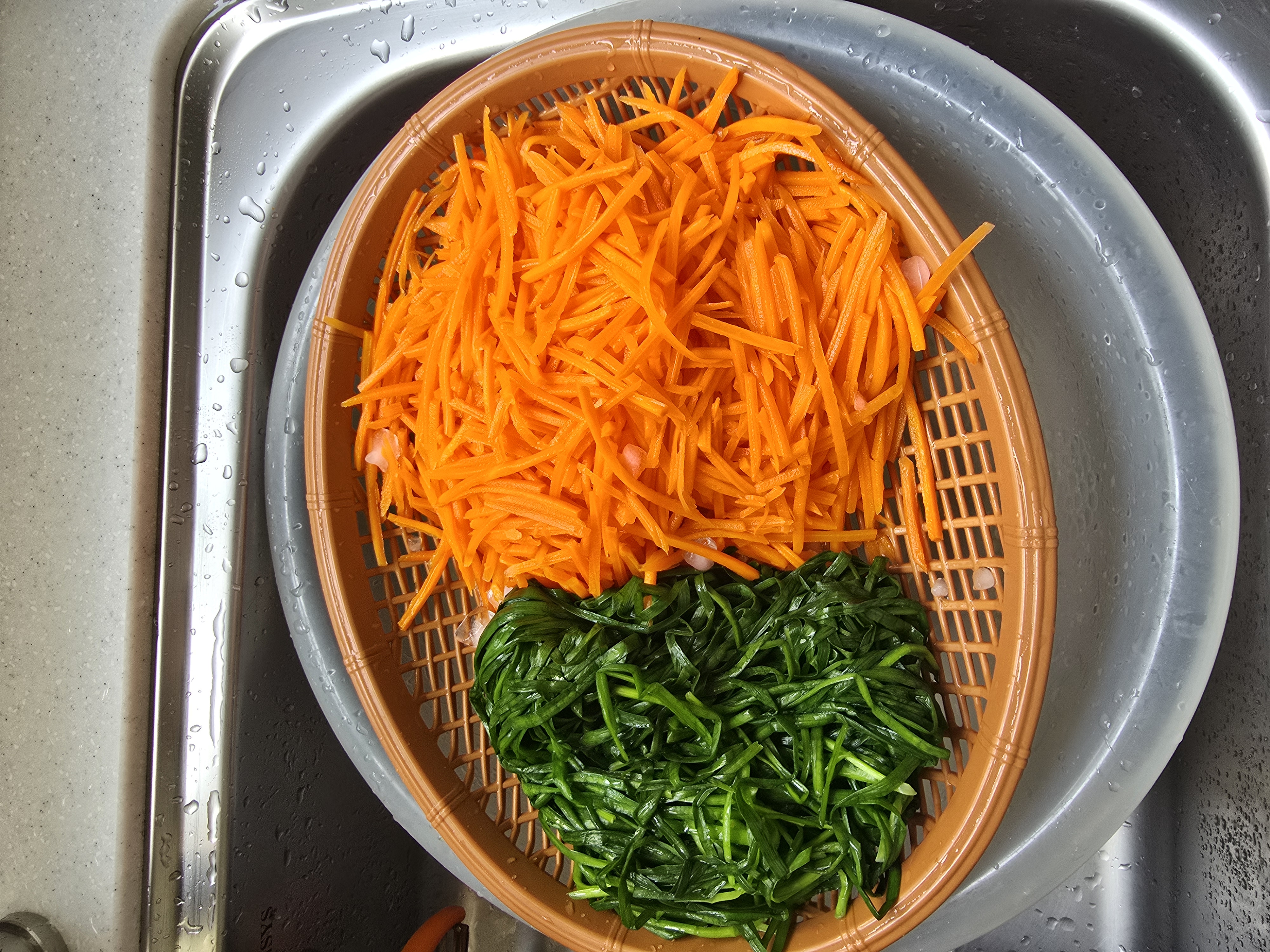 많이 넣을 당근과 부추는 끓는 물에 살짝 데쳤습니다.😁