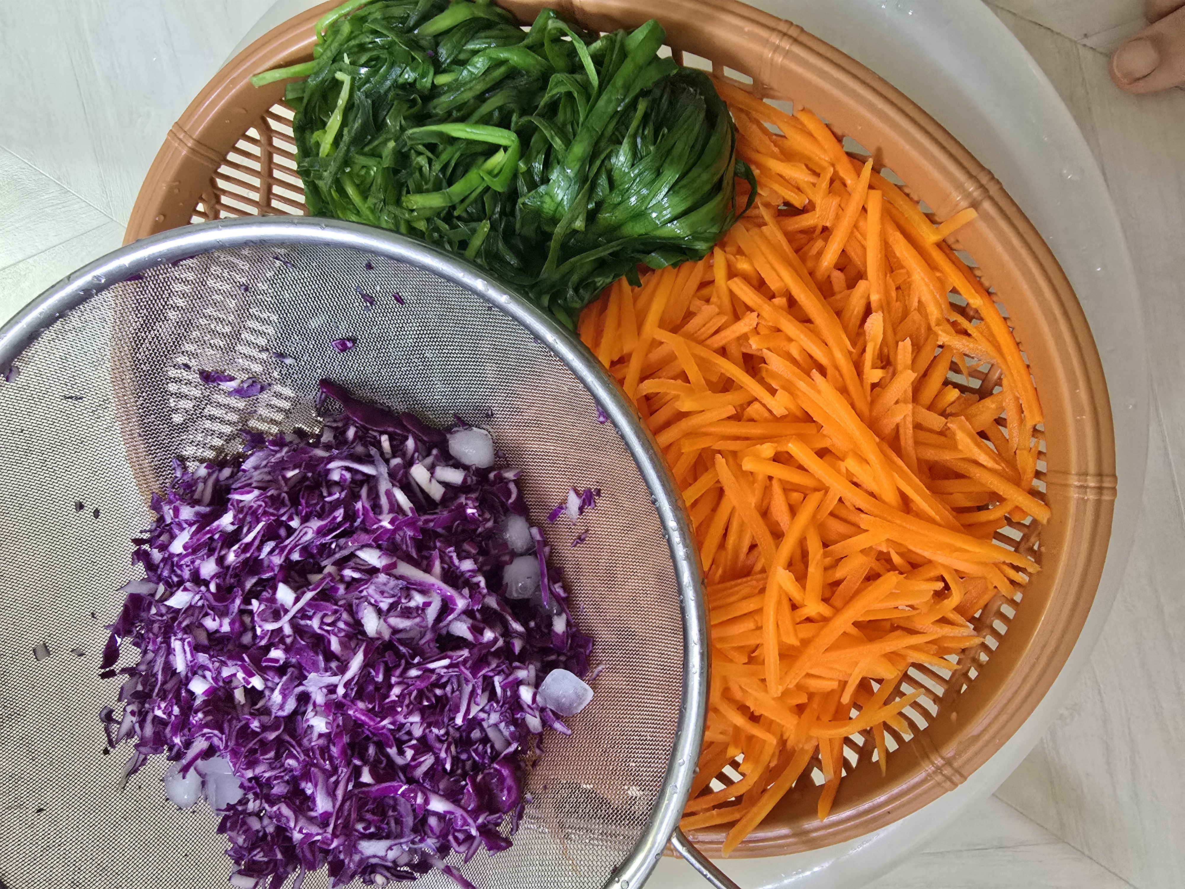 적색 양배추는 데쳐도 되지만 예쁜 색감을 위해 생으로 준비했어요. ❤️