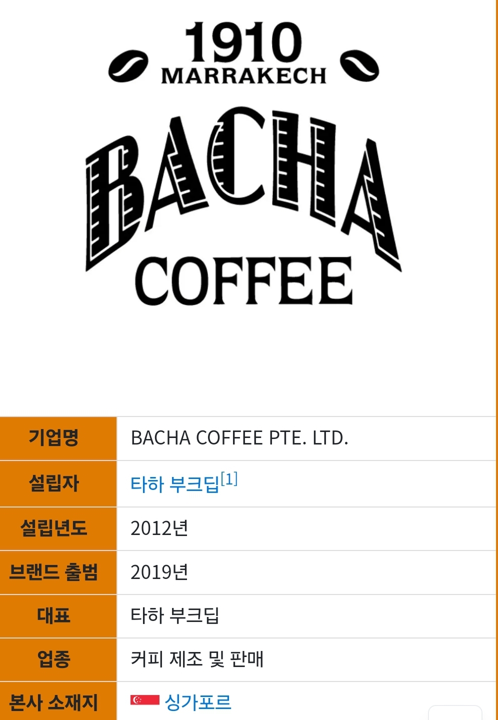 바샤커피의 모델이 된 곳은 마라케시에 있었던 커피하우스 '다르 엘 바샤 팰리스(Dar el Bacha Palace)'이다. 15세기부터 커피 무역을 하던 곳에서 설립된 커피하우스로 찰리 채플린이나 윈스턴 처칠, 프랭클린 D. 루즈벨트 등 유명인사들도 방문한 유서깊은 장소였지만, 2차 세계대전 이후로 문을 닫았다. 타하 부크딥은 다르 엘 바샤 팰리스 커피하우스에서 영감을 받아 바샤커피를 설립하게 된 것이다. 한 마디로 아무런 연관 관계도 없으나 브랜드 마케팅을 위해 1910년 마라케시에서 시작된 것처럼 보이게 한 것이다.