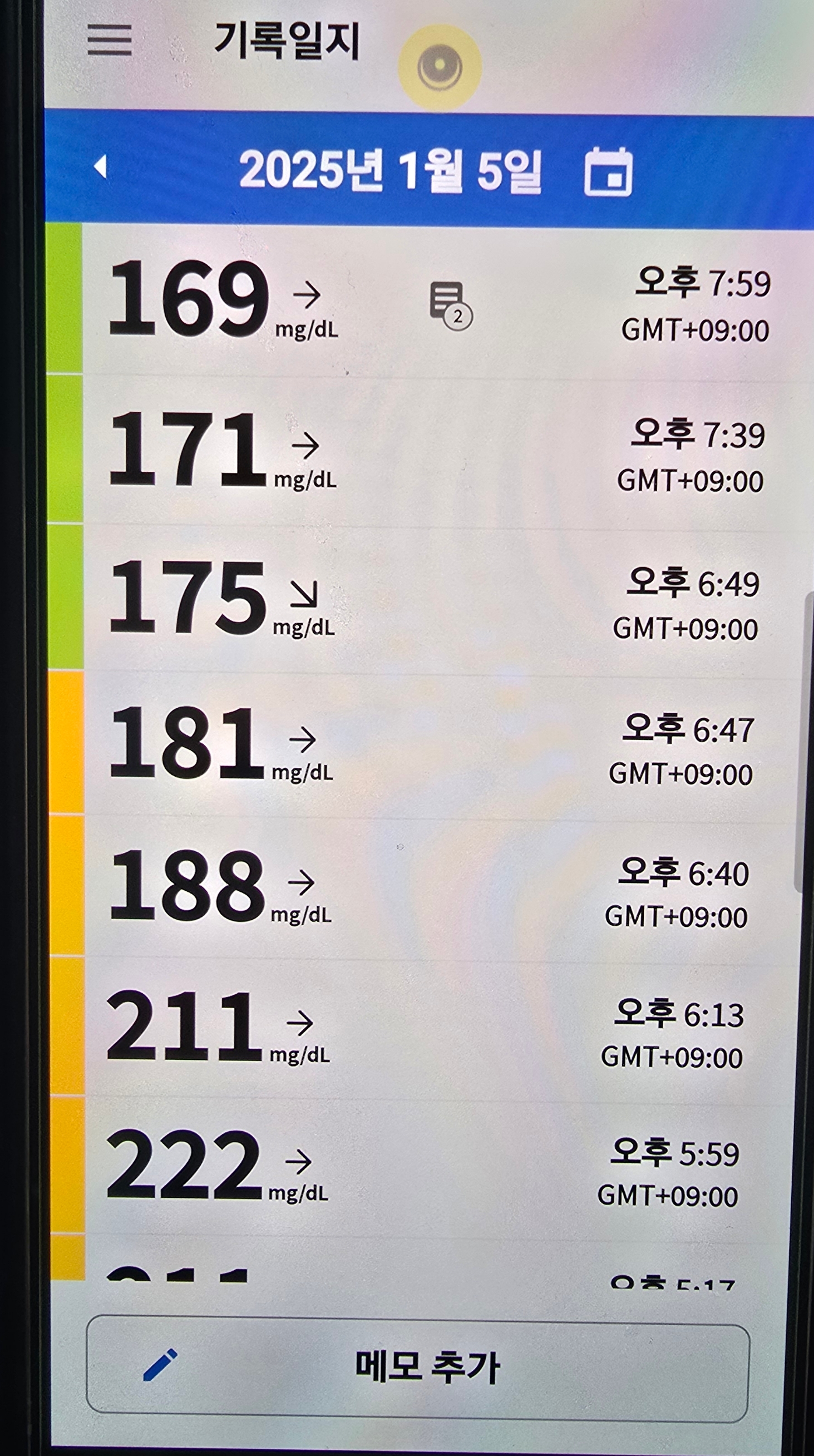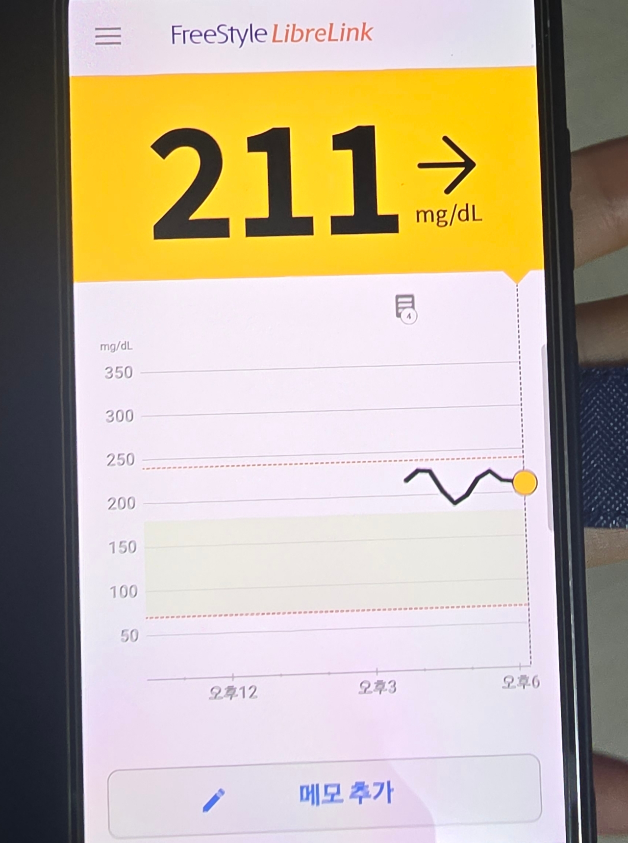 디저트와 차가 당이 짧은 시간에 높게 오르네요. 120이였던 수치가 200 찍더라고요. (후덜덜....)